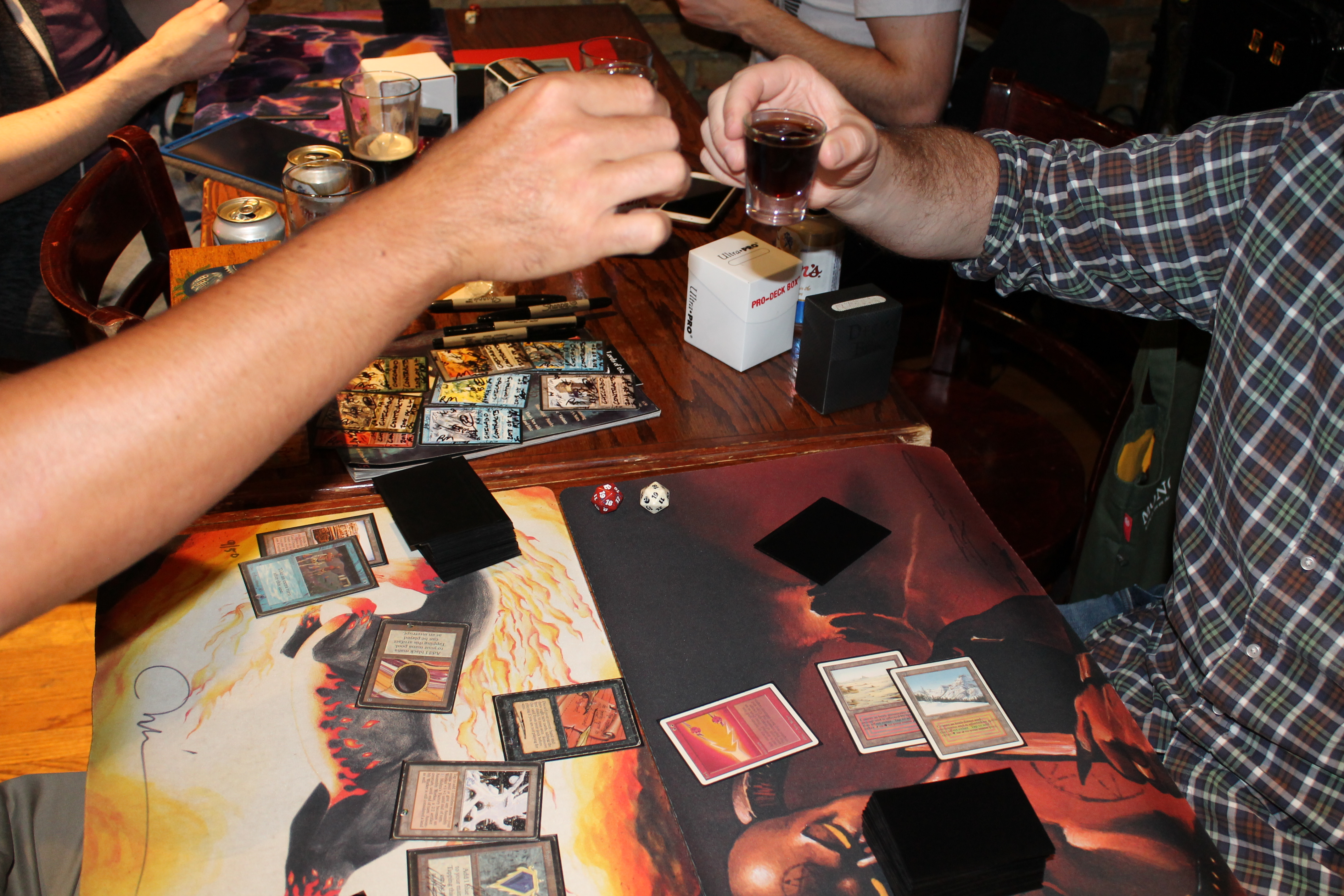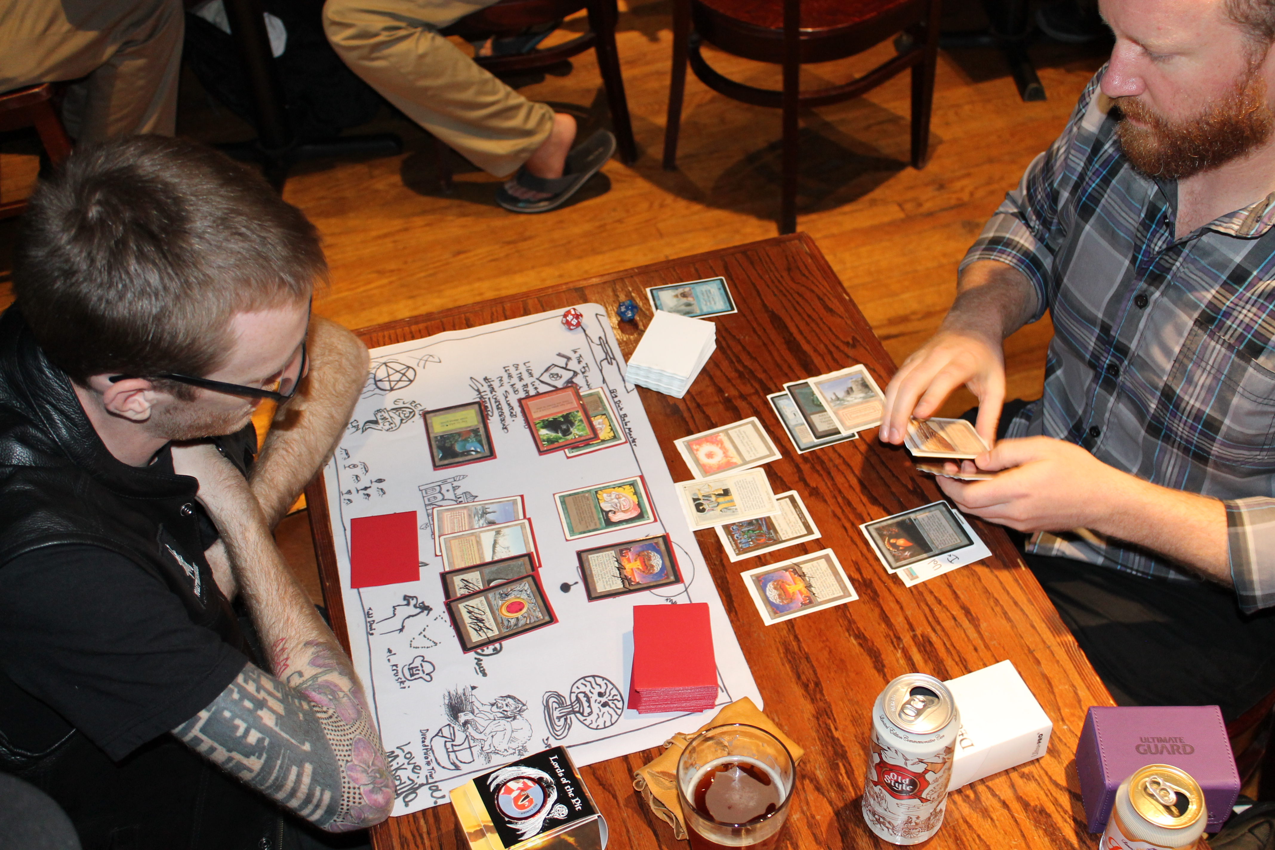 …thus began my email that circulated throughout the MTG Underground. As the second annual Old School Players’ Ball approached, I thought it might be fun to have a small Gathering for the Lords of the Pit to mingle with our inbound guests. Big Brain Bob and Jaco the Snake-o had their hands full with Saturday logistics, so I bounced ideas off Lord Semmens for a Friday night shindig. Originally, I planned to host an open house at mi casa, but as interest continued to swell, I thought it better for my own marital status to move the event off-site. I put out the S.O.S. and Lord Semmens bailed me out using his contact at our stronghold, DMen Tap, to secure a more suitable location. We chatted about the details and he upped the stakes.