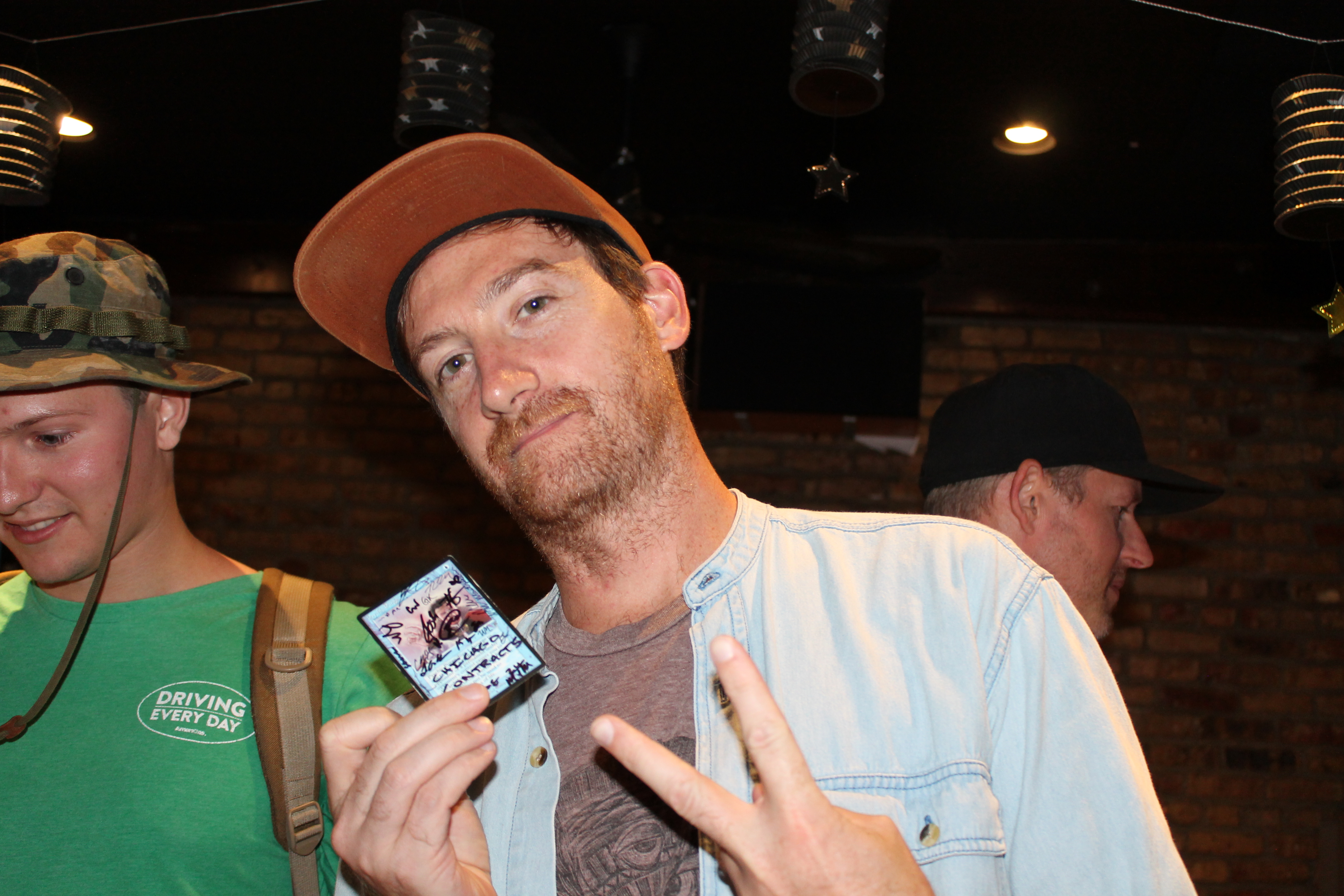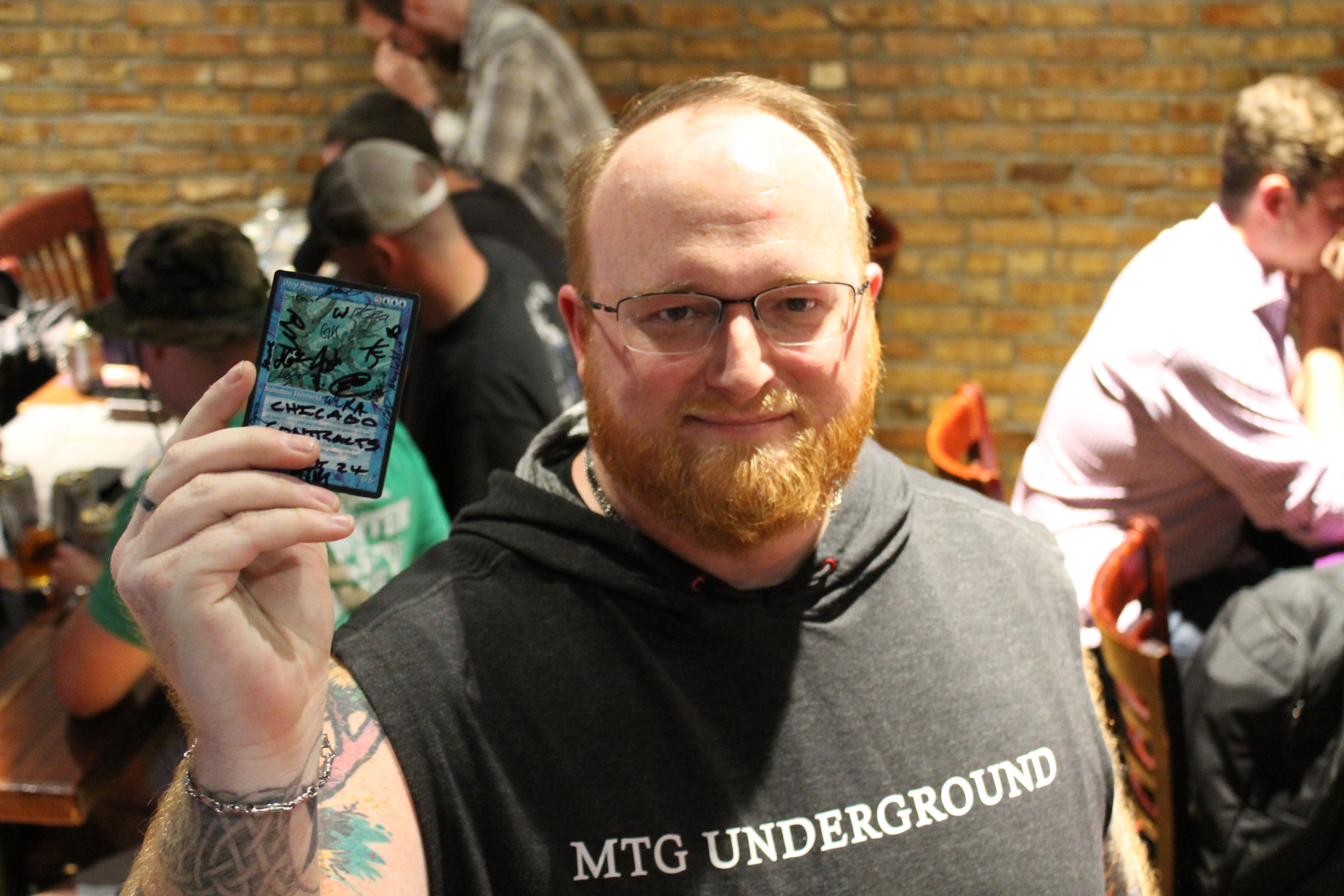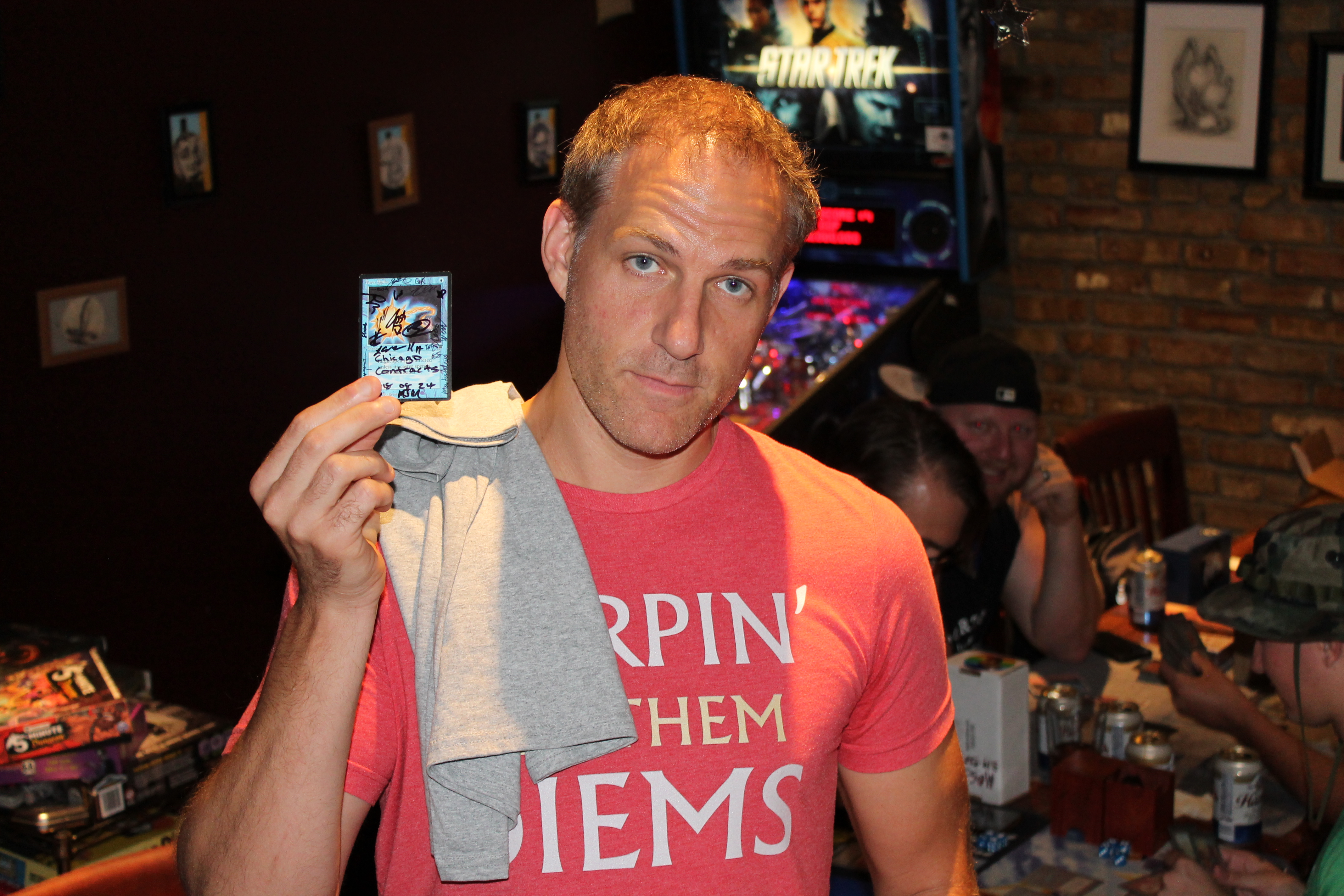 Later, I sat with Dan Ersch a.k.a. “Old School Dan” and asked if he wanted to borrow a copy of Contract. Yes, I’d packed three extra copies (signed, of course) to lend. “Sure!” he responded, “It’ll make my deck even better.” Oh shit, he was on Reanimator! One black mana to bin his dudes, Draw 7, and win the game. Dan put the boots to me and I don’t recall winning a single game, though Ydwen and Mijae nearly got me there once. After this the train derailed. During my three game set vs. Old School Dan, we loaded up on five, count ‘em, five Hamms + Kabanes. Cans and shot glasses littered the battlefield. Dan even double-Contracted me a game on the back of a Recall.