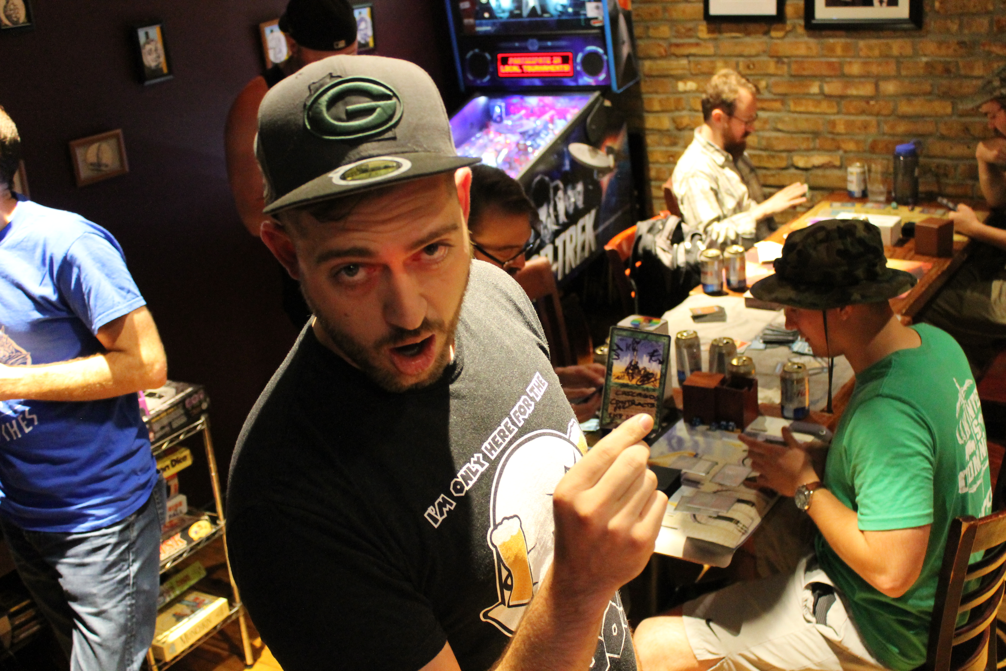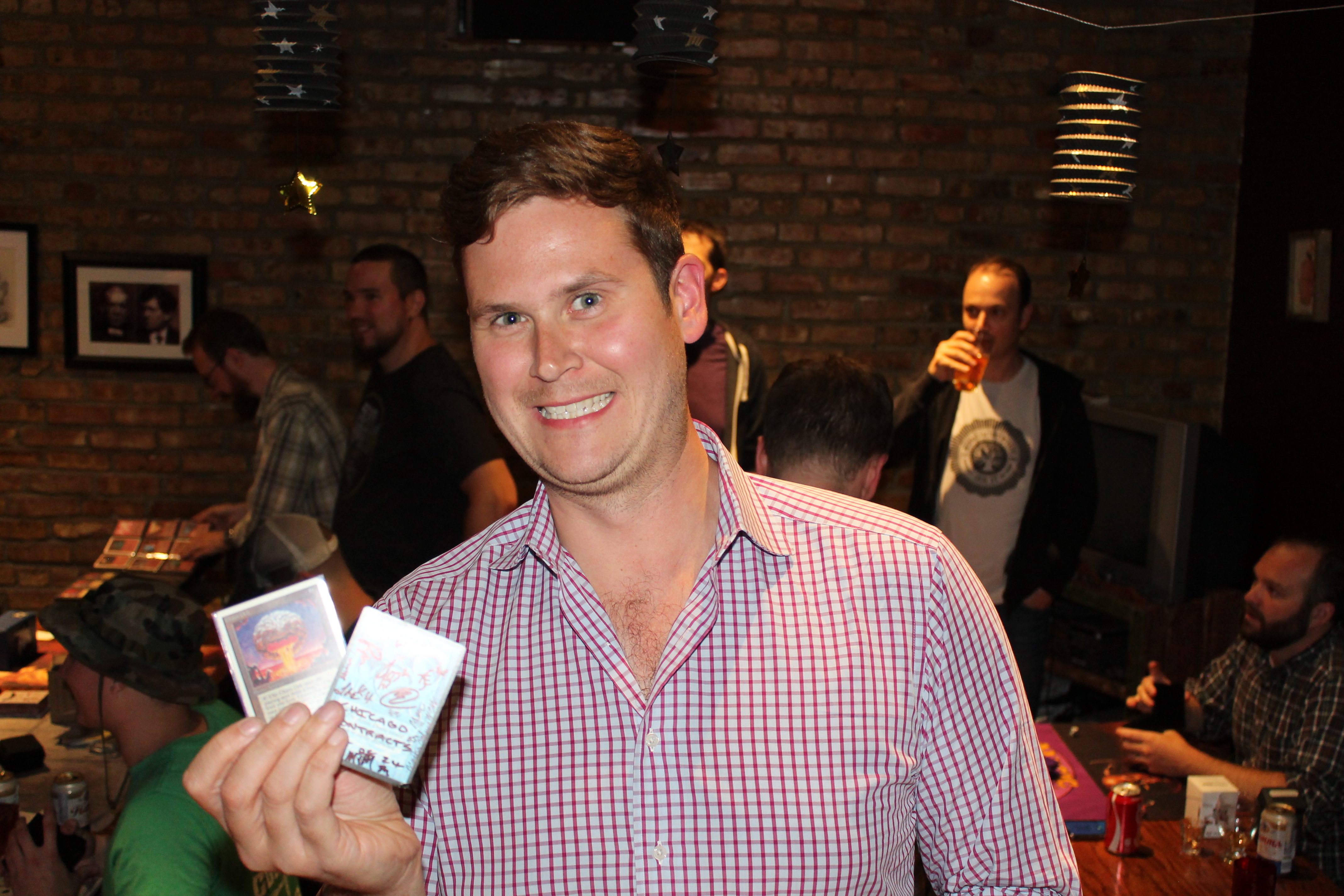 DMen Tap proved the perfect venue to host Chicago’s second* “Contracts” Gathering. Not only was the private backroom perfect for hosting our cardboard carnage, DMen also features the wonderful Hamms + Kabanes (think Jager with a little less horsepower) special at a mere $5. Boom, we had a baseline price to pay for Contract: $10 to ante up a pair of the Special and “draw seven and win.”