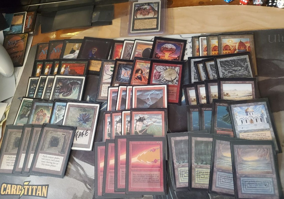 The window with no curtains, 18 inches from my face, had a clear line of sight into that glorious sunrise. Good morning, world. Pre-coffee, brain askew, I realized that after jamming cardboard and drinks for 2+ days, playing my trusty Deck of Decks for our main event did not hold its usual appeal. I opted instead for a four-color aggro-control good stuff deck. It’s more straight forward while still shuffling up some of my favorite Betas and all the Power. I pulled the cards together but couldn’t find the right lands. Hey, it’s close enough! I grabbed my Vintage deck and the previous day’s mug in search of caffeine and opponents. Time for some fucking Magic.