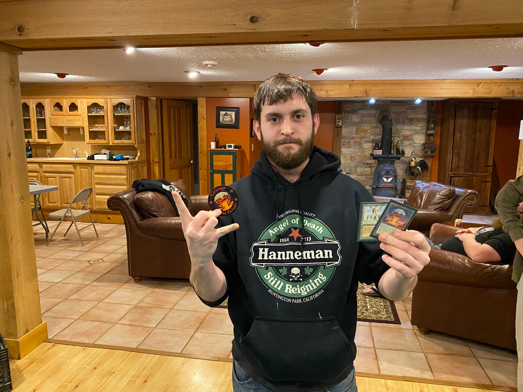 Well, hot damn, from player-of-the-year to reigning Lords Haus Champ, Carter Petray. I talked tons of shit about dethroning the king. The king that arrived day-of on full rest. (Carter has real world responsibilities now?) I ate my words as rapidly as ever. I don’t even know how it happened, but Carter dismantled me with his deck of shitty 1/1 flyers and Relic Barriers (!?) that somehow coalesced into a fine weapon. I cast Carter’s former CE Ancestral Recall and Time Walk against him, to no avail. He operated on another level of play (juiced by actually sleeping the last couple nights, no doubt) and had a decklist tuned and ready. A demonstrative performance from a great player, it felt like Carter was on another level entirely. I returned to the bar to double down on Nathan’s cocktails. 2-2.