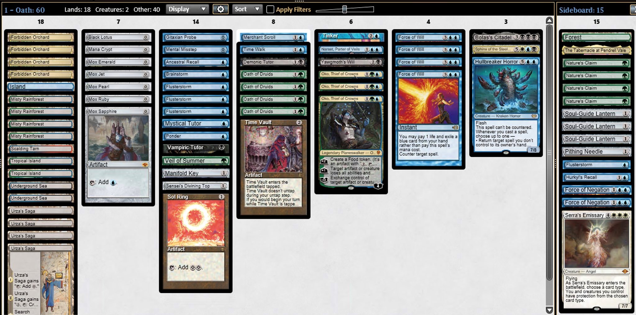 Bob won Vintage with Oath and Okos. Go Bob, go! His deck photo is an MTGO screenshot, his biggest punt of the weekend.