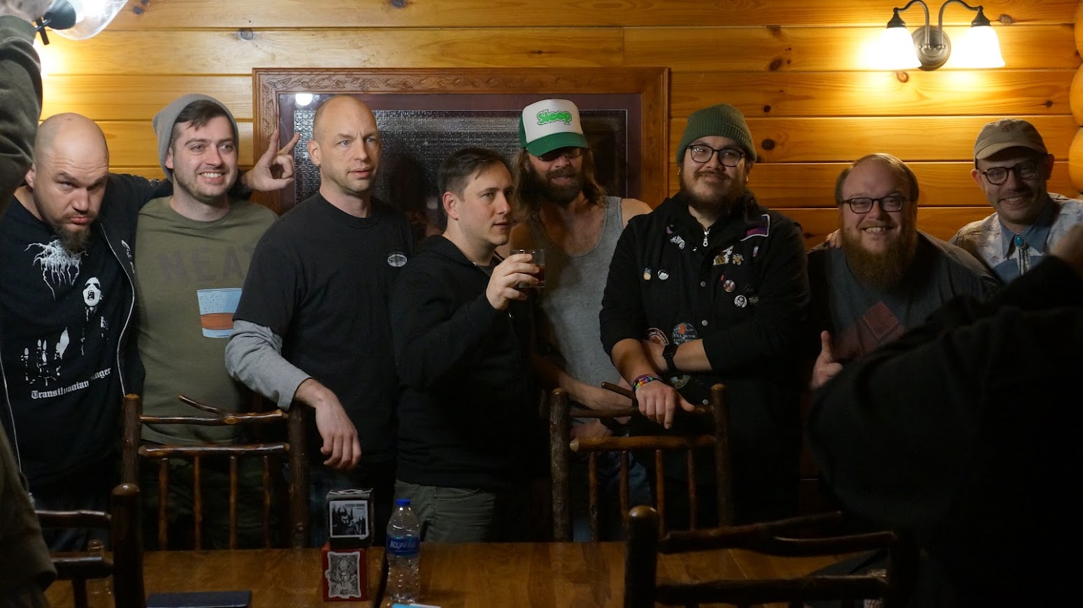 At our advanced age, we should know better by now, but alas. Some Filipino breakfast with Jaco and Dom, followed by loading vehicles, shook off the previous evening’s haze. Bob pre-planned for Lords to arrive at his house in timed increments to pick up food and gear to hump into the woods. This ended up being a series of mini-reunions on the freezing street, dropping cases of cola and cookies onto the concrete to exchange hugs and laughs. I finally got to meet the legend Cam after many webcam meetups throughout the COVID era. Justin arrived from the airport, and once Bob’s house was emptied out he joined us on the road. We made one last detour into Costco for more food and booze, just in case.