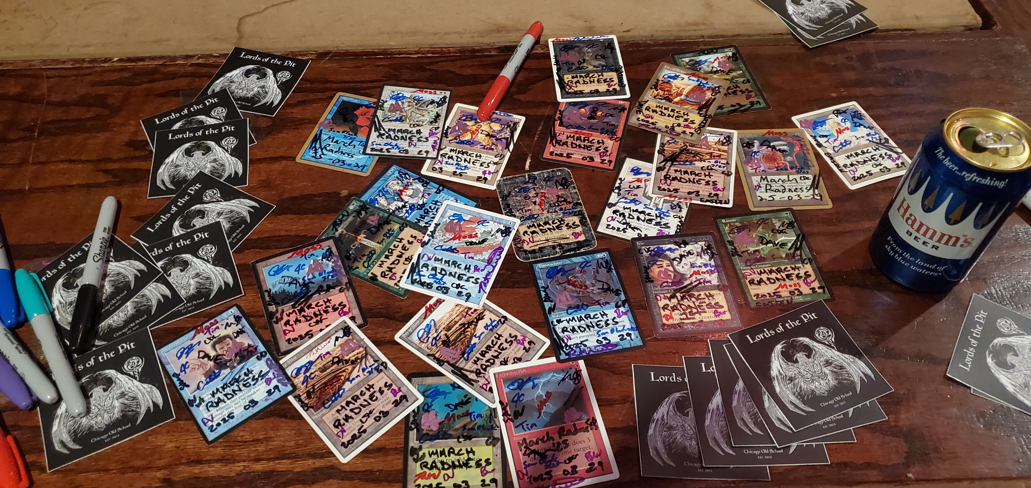Beneath the steel grey of a late March Chicago sky, 22 Lords & Co. met to duel in the arcane arts of cardboard carnage at our longtime stomping ground, DMen Tap, for the first meetup of 2025 - the aptly titled “March Radness.” It had been quite some time (years, perhaps?) since the Lords had hosted a regular, “old school” old school EC 93/94 meetup, and interest seemed keen as we were able to attract a number of newcomers. There may have been some new faces, but the format remains, as ever: Blue is busted, White gets wins, and the rest is a matter of personal taste (plus four Strip Mines). Still, the ritual, dark though it may be, felt vibrant as folk met to give hugs, shake hands, pound knucks, deface cards, then battle to the death amidst the prismatic planes of Dominaria.