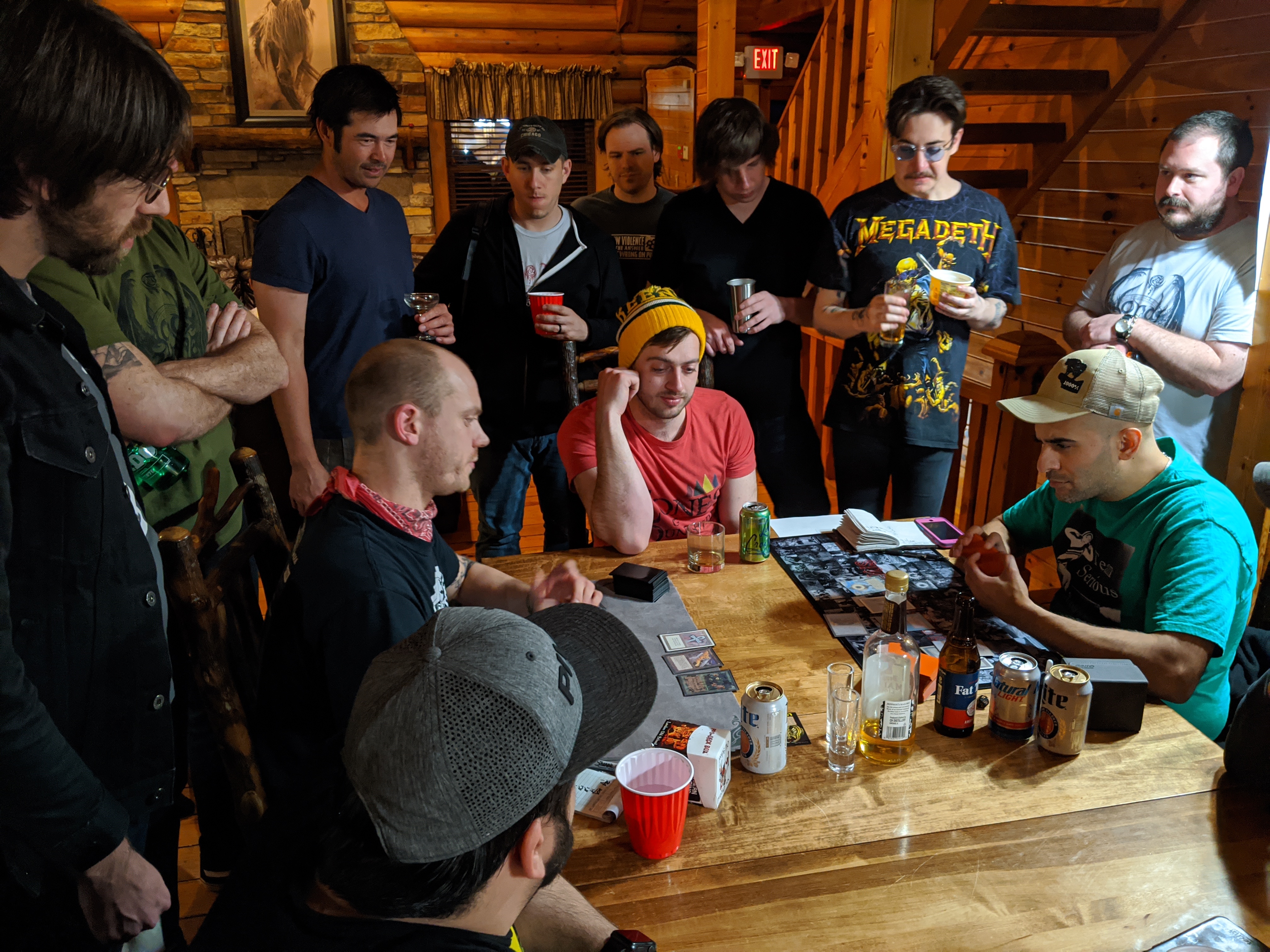 For me, deciding what to play was easy. I had been on various SquirrelCraft Enchantress lists for the last two full years. Deciding what to drink was similarly easy, as Jaco brought a bottle of the delicious Probitas Rum (along with Warhead flavored FourLoko, which I of course did not drink.) Spicy margaritas were flowing at Chili’s and the Lobster Punch was extremely tasty. Deciding what to eat was another matter. I had committed myself to eating something from each restaurant. I landed on dry rub ribs, a jamocha shake, and shrimp scampi. I’m still shocked no one ended up with food poisoning, which only makes me assume that alcohol kills E. coli.